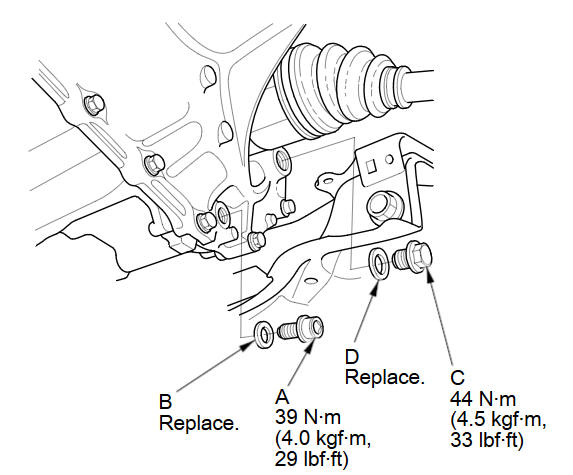Reinstall the drain plug with a new sealing washer, and refill the transmission with MTF to the proper level. Always use Honda Manual Transmission Fluid (MTF).