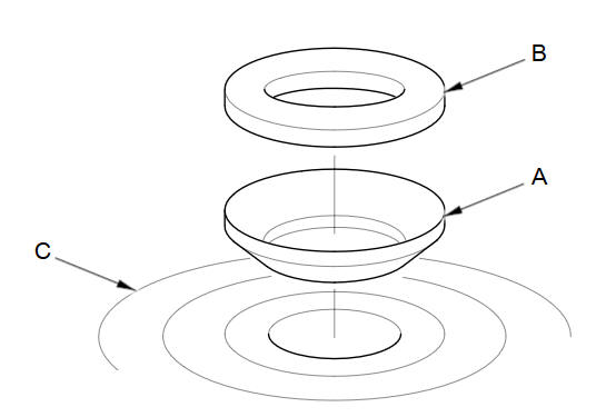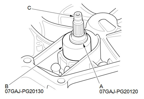 Slide the collar (A) and the mainshaft base (B) over the mainshaft (C).