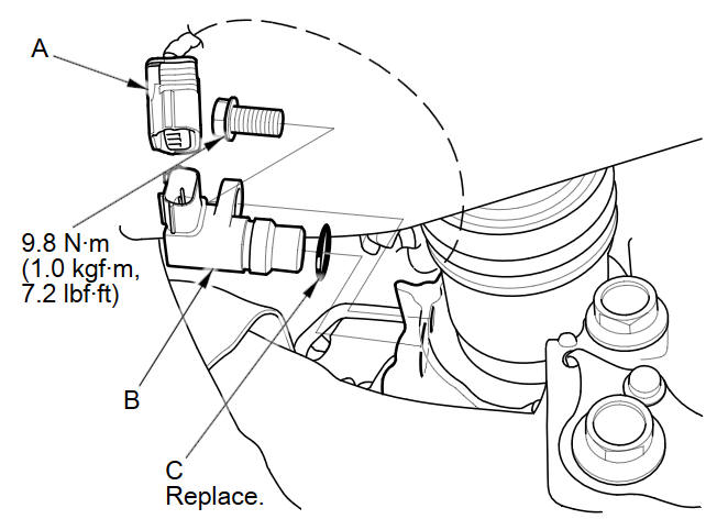 Remove the output shaft (countershaft) speed sensor (B).