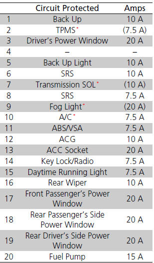 Fuse locations are shown on the fuse box cover. Locate the fuse in question by the fuse number and box cover number.