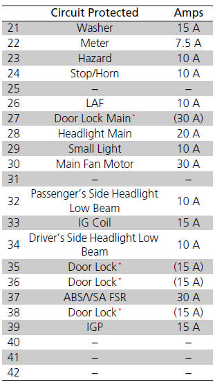 If any electrical devices are not working, turn the ignition switch to LOCK (0 and check to see if any applicable fuse is blown.