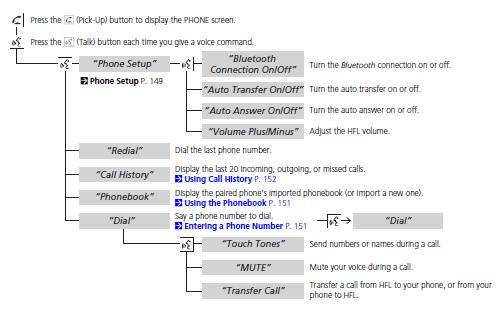 You can operate HFL by voice when on the PHONE screen. Below is the flow chart showing available voice commands.