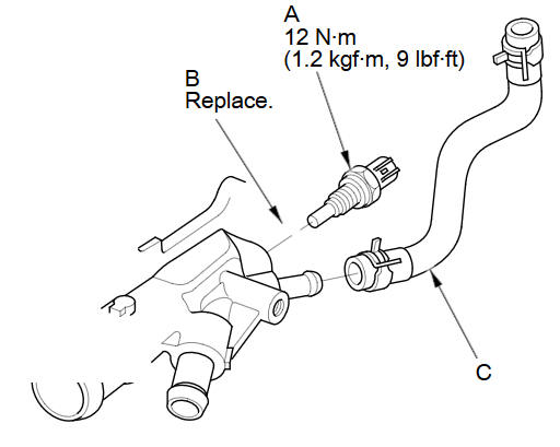 Install ECT sensor 1 (A) with a new O-ring (B).