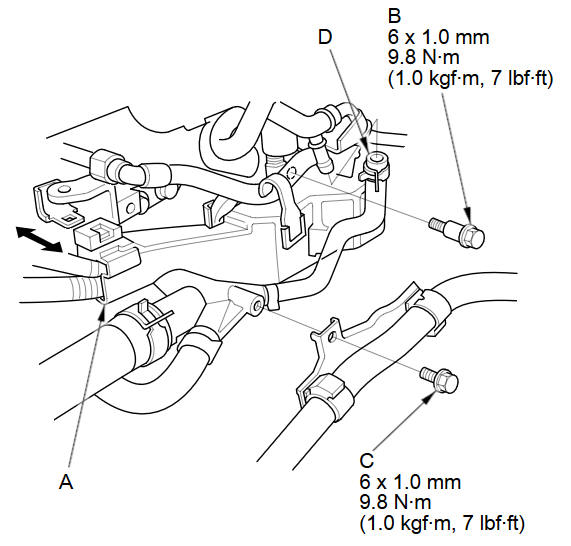 Install the water bypass hose (C).