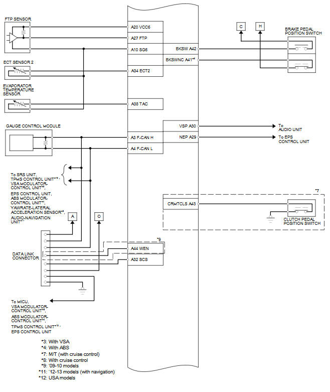 After the ignition switch is turned to ACCESSORY (I) or to LOCK (0), the ECM/PCM stays on for up to an hour. If an ECM/PCM connector is disconnected during this time, the ECM/PCM may be damaged. To cancel this mode, disconnect the negative cable from the battery, or jump the SCS line with the HDS after the ignition switch is turned to ACCESSORY (I) or LOCK (0).