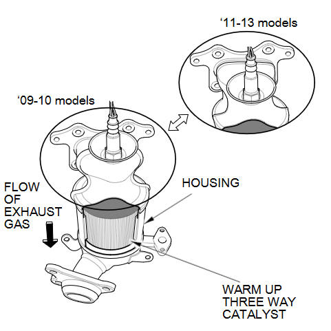 The WU-TWC and the under-floor TWC convert hydrocarbons (HC), carbon monoxide (CO), and oxides of nitrogen (NOx) in the exhaust gas to carbon dioxide (CO2), nitrogen (N2), and water vapor.