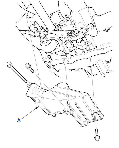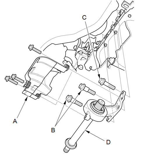 Remove the two dowel bolts (B) and the flange bolt (C).