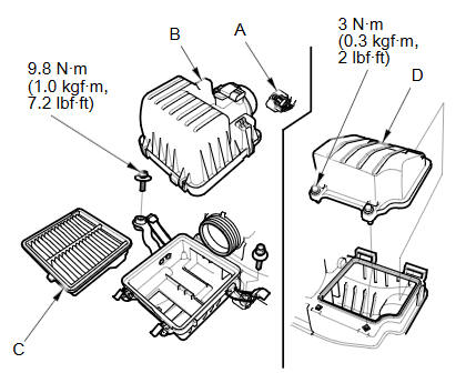 NOTE: Be careful not to damage the MAF sensor/IAT sensor on the air cleaner cover.