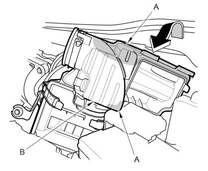 Apply protective tape to the air cleaner, the cowl cover, and the battery terminal fuse box (A) as shown.