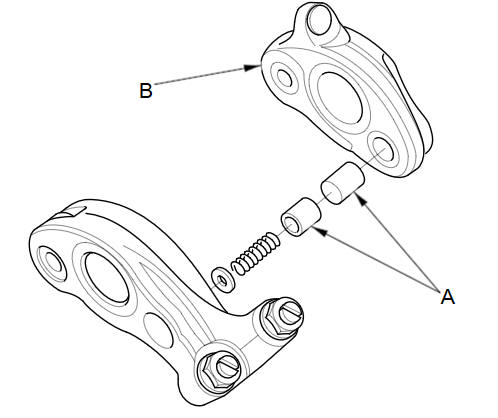 Inspect the rocker arm pistons (A). Push on them manually. If they do not move smoothly, replace the rocker arm set.