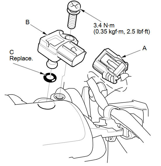 Install the parts in the reverse order of removal with a new O-ring (C).