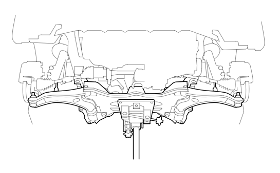 Lower the front subframe and steering gearbox as an assembly by lowering the jack slowly.
