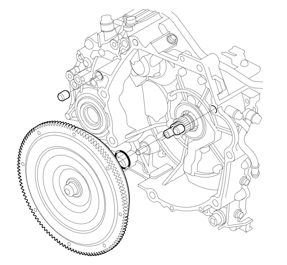 Remove the torque converter cover (A), and remove the drive plate bolts (B) (eight bolts) while rotating the crankshaft pulley.