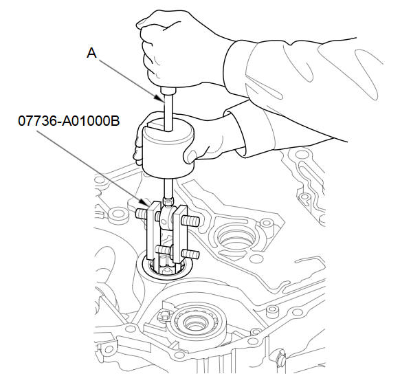 Remove the countershaft bearing using the adjustable bearing puller (20пјЌ40 mm) and a commercially available 3/8 ''-16 slide hammer (A).