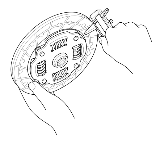 Measure the clutch disc thickness. If the measurement is less than the service limit, replace the clutch disc.